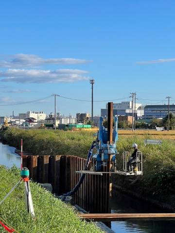 主な仕事はサイレントパイラーによる各種鋼矢板の圧入引抜工事・付随する作業を行っています。他にも色々ありますが、現場の休憩室・事務所として使用する仮設ハウスの組み立て、内装や連結も行います。長年培った技術と経験によりお客様をサポート。
